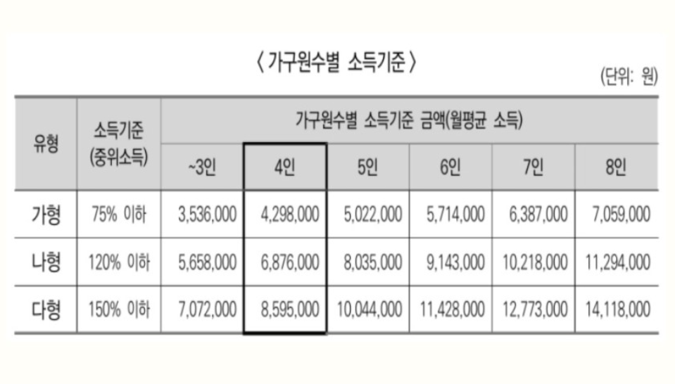 - 다자녀 가정의 경우 중위소득 150% 이하일 때, 본인부담금의 10%를 추가 지원합니다.