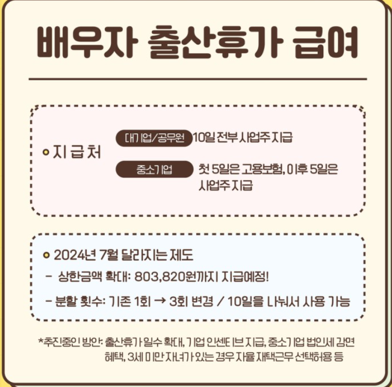 배우자 출산휴가의 경우, 2024년 7월(하반기) 부터 달라지는 제도가 있습니다.