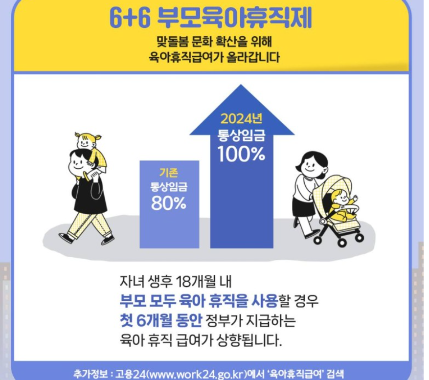현 12개월인 육아휴직기간을, 부모 모두 3개월 이상 사용한다면 추가로 6개월이 부여되고 연장기간에도 육아휴직 급여를 지급하게끔 변경할 예정이라고 합니다.