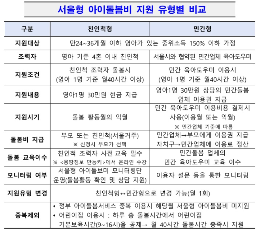 위 서비스 외에, 서울시에서는 민간형 아이돌봄 서비스도 같이 지원하고 있습니다.