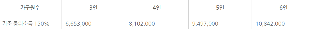 아래 표에 2023년 가구원수별 소득기준을(세전) 첨부하니, 참고하시기 바랍니다.